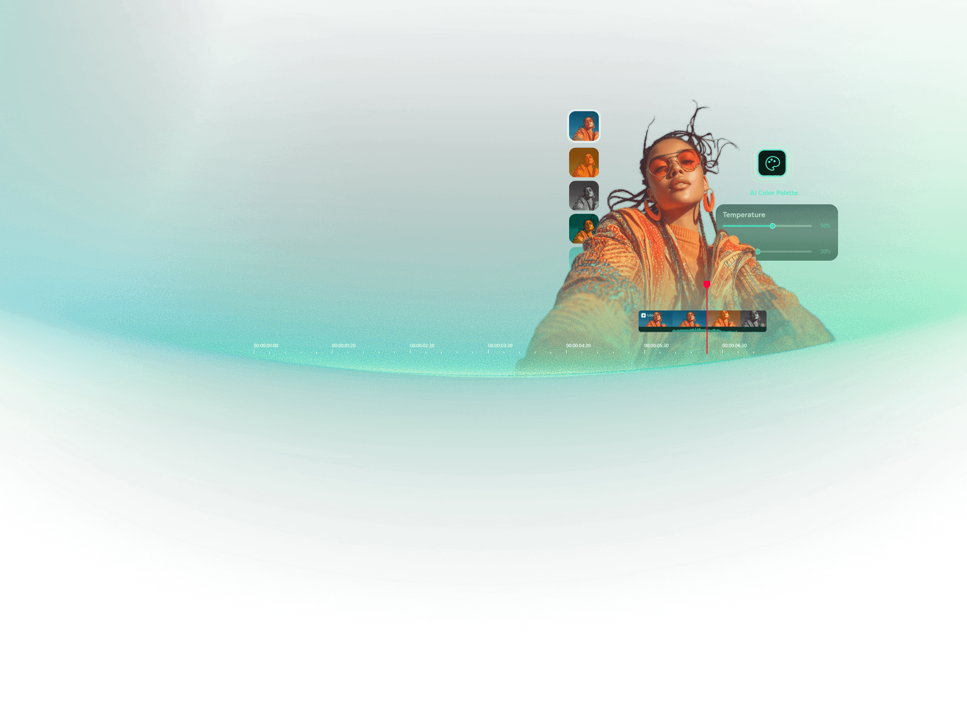 任意の参照画像や動画からカラーパレットを抽出し、映像全体に適用して統一感のあるビジュアルを実現します。